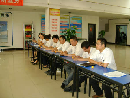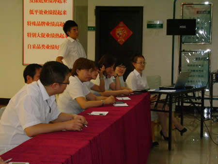 經(jīng)過(guò)兩番試卷考核之后,于2011年6月22日下午15:00時(shí)進(jìn)行了第一場(chǎng)實(shí)操PK賽——我來(lái)講業(yè)務(wù)部分的競(jìng)技。此次比賽均采用現(xiàn)場(chǎng)電腦隨機(jī)抽題,比賽人員現(xiàn)場(chǎng)準(zhǔn)備現(xiàn)場(chǎng)作答。業(yè)務(wù)展示題目涉及到賣(mài)場(chǎng)基層管理人員最核心、最基本的崗位知識(shí)、技能和職業(yè)素養(yǎng),如促銷(xiāo)管理、員工管理、VIP顧客管理、目標(biāo)責(zé)任管理等。