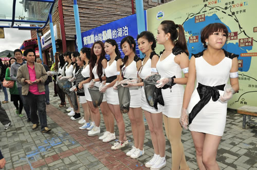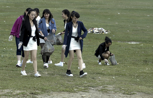 中午,一行到達(dá)青海湖畔。天高地闊的美景與靚麗的美女即刻構(gòu)筑成為一道精彩的風(fēng)景,隨行攝影師、攝像師即刻拿起機(jī)器留下許多難得的好畫面。接下來的環(huán)保實(shí)踐與環(huán)保意識(shí)推廣為眾多選手留下了深刻的印象,許多選手紛紛表示希望通過自己的行動(dòng)提高社會(huì)環(huán)保意識(shí),讓跟多人參與到保護(hù)青海湖環(huán)境中來。