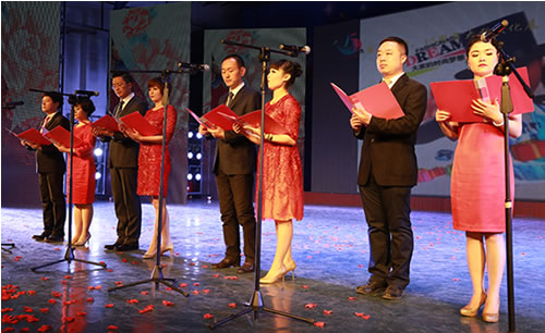 2015年2月9日晚,在蘭州37中(蘭州女子專業(yè)中等專科學(xué)校)5樓藝術(shù)廳內(nèi),國芳集團(tuán)“你好,2015”2014年終總結(jié)表彰大會暨2015年新年盛典溫馨開演。恰逢國芳集團(tuán)成立十五周年,晚會現(xiàn)場充滿了溫馨、喜慶和感動。晚會延用了去年的大型LED顯示屏、多組VCR、微信平臺等廣受好評的元素,并創(chuàng)新的融入了中華名族傳統(tǒng)的禮儀文化,漢唐古典舞的壯觀優(yōu)美,員工孩子們《弟子規(guī)》的可愛表演,都在為晚會添加了精彩度的同時,將傳承禮儀所需要的高尚美德這一思想深入的傳達(dá)到每一位員工的心中。員工們精心準(zhǔn)備的節(jié)目一個比一個精彩,極具藝術(shù)表現(xiàn)力和觀賞性,董事長也被熱烈的氣氛所感染,親自上臺演唱了兩首歌曲,把晚會推向了高潮。最后,國芳集團(tuán)年終晚會在祥和熱烈的氣氛中落下了帷幕。讓我們共同期待來年的精彩!