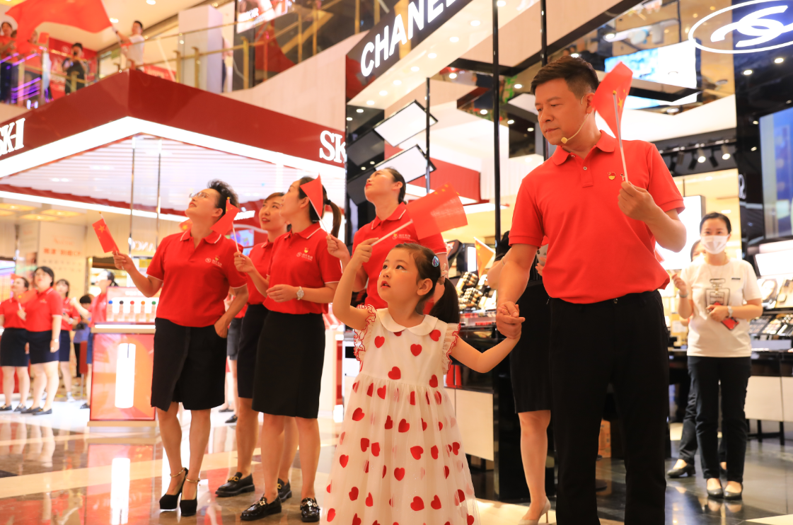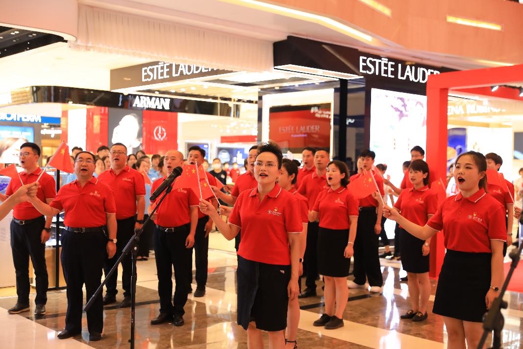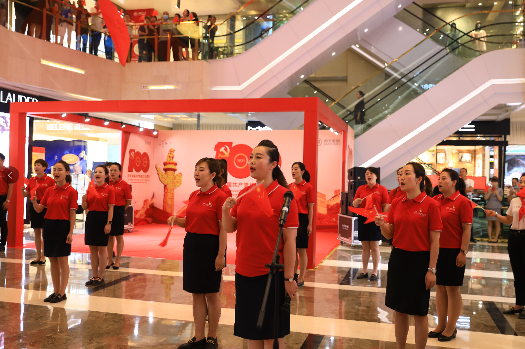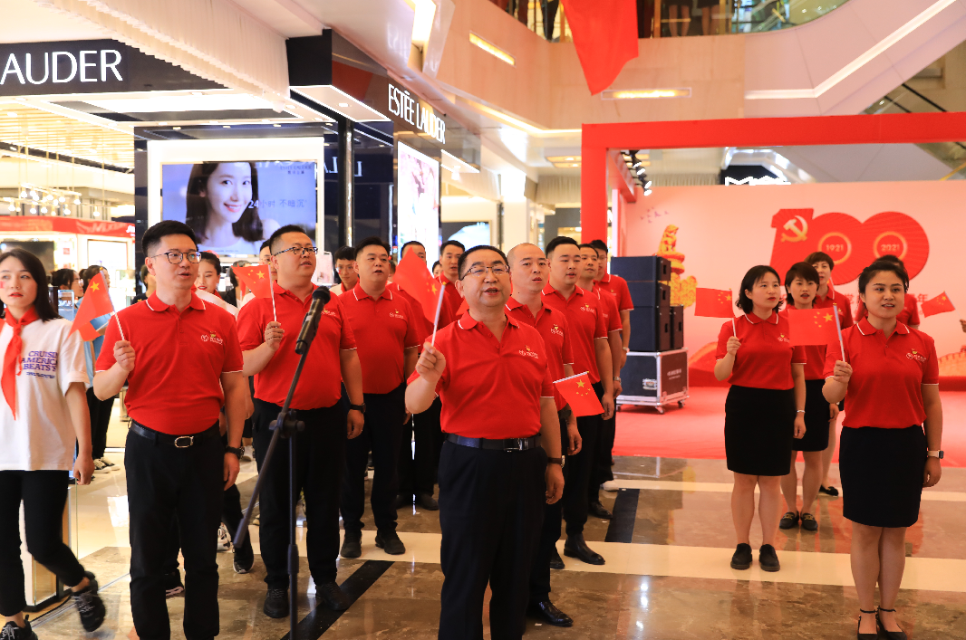 下午14時(shí),國(guó)芳集團(tuán)慶祝中國(guó)共產(chǎn)黨成立100周年紅歌快閃活動(dòng)在蘭州國(guó)芳百貨廣場(chǎng)店一樓中廳隆重舉行。國(guó)芳集團(tuán)全體黨員及員工代表參與其中,大家用歌聲表達(dá)對(duì)黨的無(wú)限忠誠(chéng)和美好祝福。